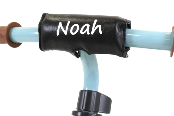 Bruine kinbeschermer met eigen naam van Bandits an Angels, gemaakt van zacht PU kunstleer. U kunt er een naam van maximaal 10 karakters op laten drukken. De kinbeschermer is eenvoudig te bevestigen aan het stuur door middel van de klittebandsluiting. Ruilen en/of retour sturen van de kinbeschermer is niet mogelijk, omdat dit een op maat gemaakt product is.