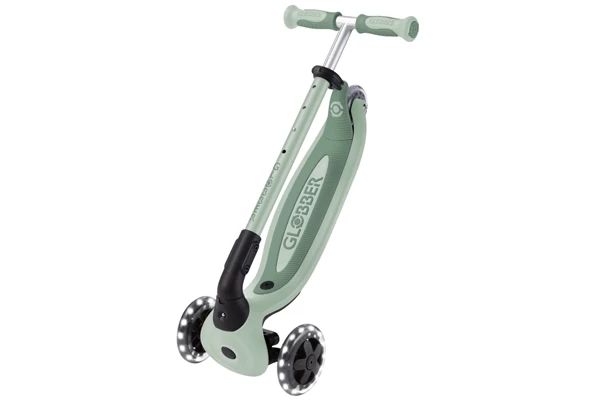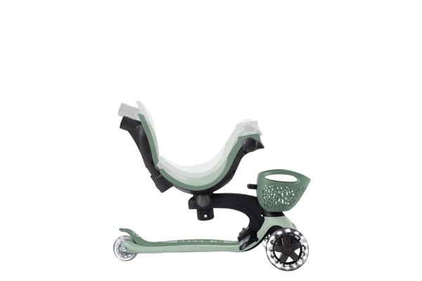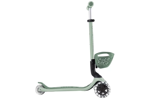 Dit groene voertuigje groeit vanaf 15 maanden mee tot ongeveer 6 jaar! LED lampjes in de wielen lichten op tijdens het rijden. Gebruik hem eerst als ride-on. De duwstang is voorzien van een comfortabele rugleuning. En er zitten extra zijwieltjes op die 360° draaien. Toe aan de volgende stap? Verwijder deze hulpstukken en je hebt een loopfiets. De zitting is in hoogte verstelbaar (26-31 cm). Op het stuur zit een leuke LED module. De laatste stap is de transformatie naar de step. Het stuur is in drie hoogtes verstelbaar (54-61-68 cm). Er zit een inschakelbaar stuurslot op. Voorop zit een leuk mandje in bijpassende kleur. De step kan volledig worden ingeklapt.